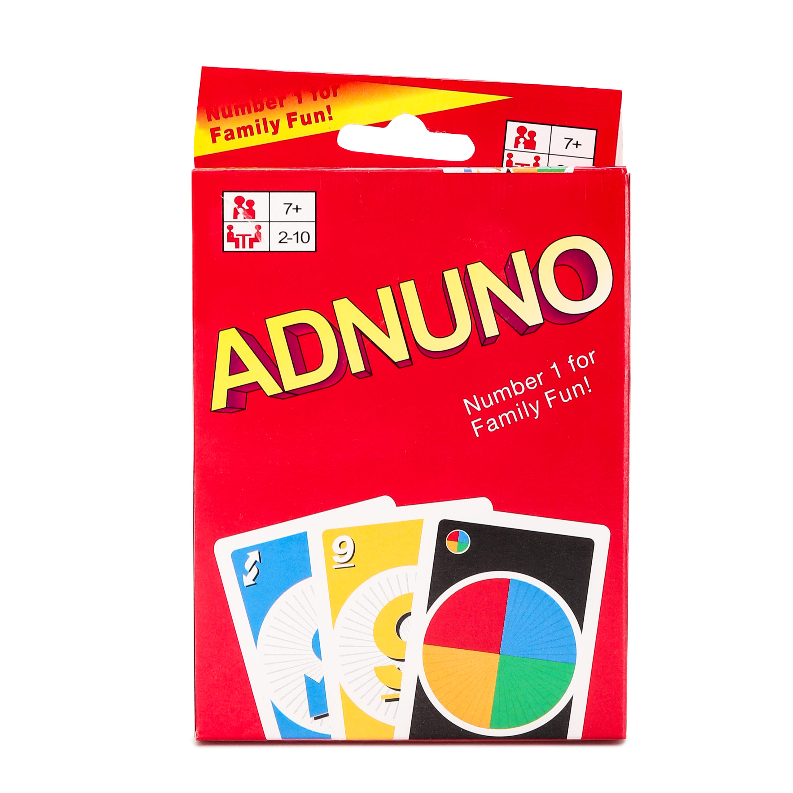 108 high-quality playing cards (including number, action, and wild cards) and a rule sheet.